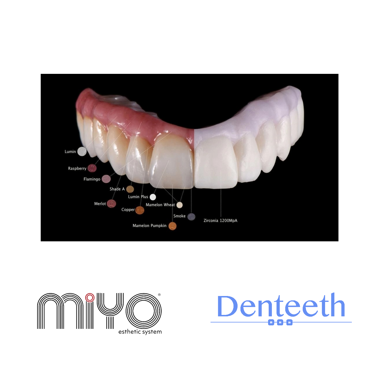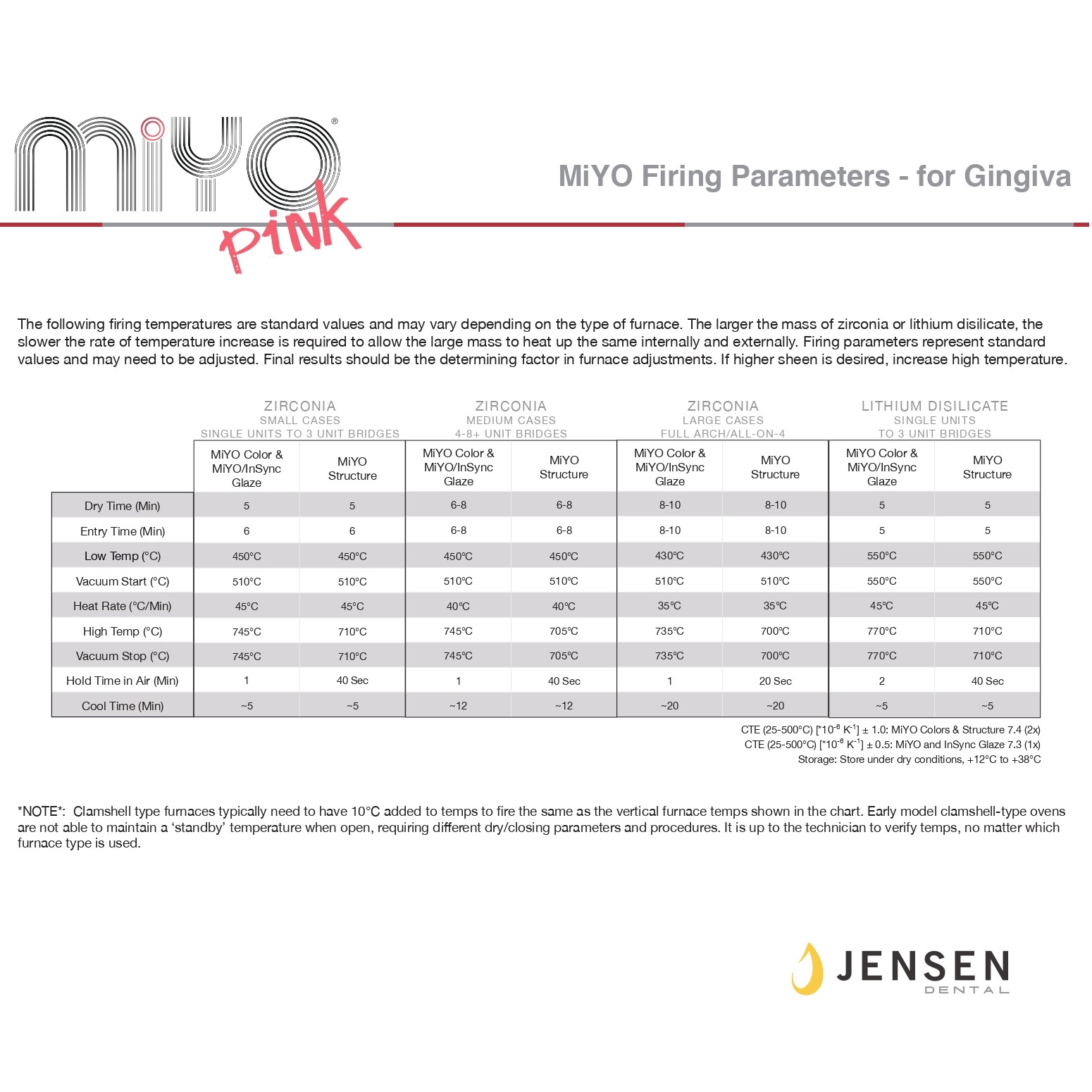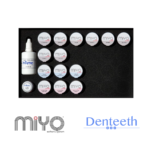 Jensen actualmente ofrece dos kits estéticos de acabado MiYO*: Sistema estético MiYO para dientes y sistema estético MiYO pink para tejidos gingivales. Ambos son un sistema de acabado único,
