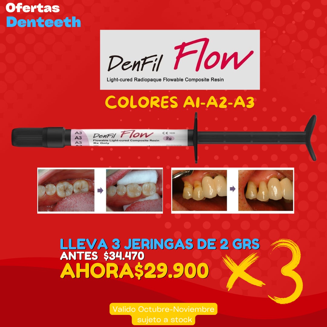 DenFill Flow es una resina fluída de fotocurado, radiopaca y con excelentes propiedades mecánicas.