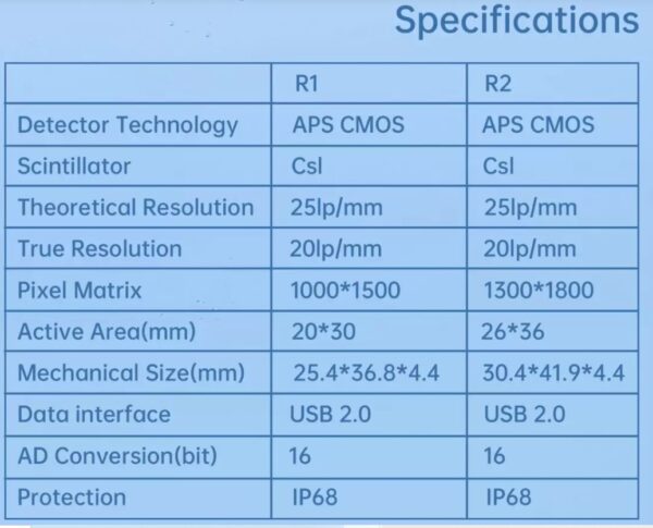 Cuenta con un sensor CMOS de paso de píxeles de 20 μm con centelleador CsI que garantiza una resolución óptima. El sensor tiene un diseño ergonómico con bordes lisos, esquinas redondeadas y un cable flexible para la máxima comodidad del paciente. Una interfaz USB directa de alta velocidad fácil de usar permite una conexión simple a un PC sin necesidad de una caja de control adicional. La aplicación opcional de software intraoral iRay hace que sea fácil adquirir, mejorar, analizar, ver y compartir imágenes.